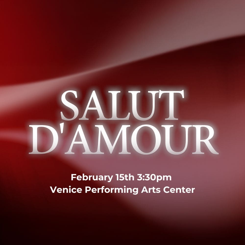 Venice Symphony Violin, Flute and Harp Trio Classical music is like a love potion, it stirs emotions and makes connections stronger. This Salut D’amour concert makes for the best romantic date night for Valentine’s weekend.